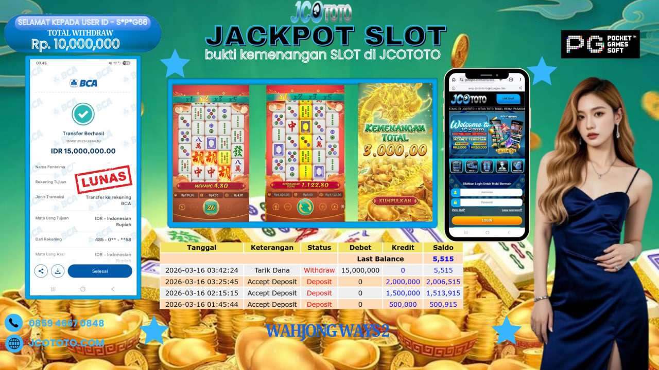 Gambar dibawah merupakan pembuktian bahwa Bandar SLOT & TOGEL Online JCOTOTO bukanlah Bandar abal-abal. Karena JCOTOTO membayar semua kemenangan member LUNAS tanpa ada tunggakkan atau pengunduran.